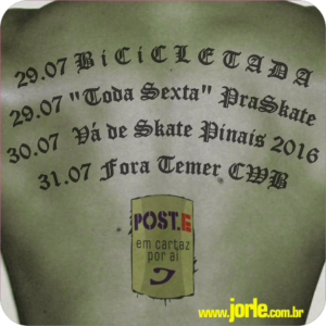 Sábado, 13h Campeonato Mirim, Feminino, Iniciante e Amador; DJ; Oficina de Grafite; Aula com sktrs convidados. + Info
