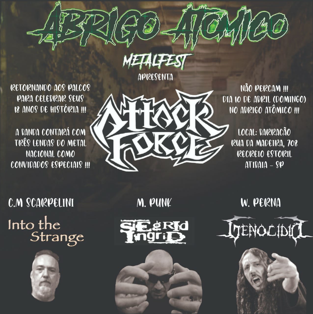 METAL FEST que acontece em ATIBAIA / SP, desde abril de 2006! Desde sua primeira edição, o Abrigo Atômico vem ganhando espaço na cena underground. Inúmeras bandas consagradas já se apresentaram, como Anthares, Genocídio, NervoChaos, Andralls, Executer, Pentacrostic, Oligarquia, além de bandas da nova geração do metal nacional.